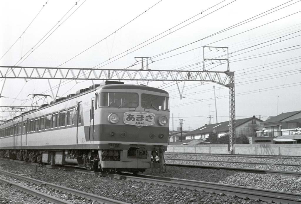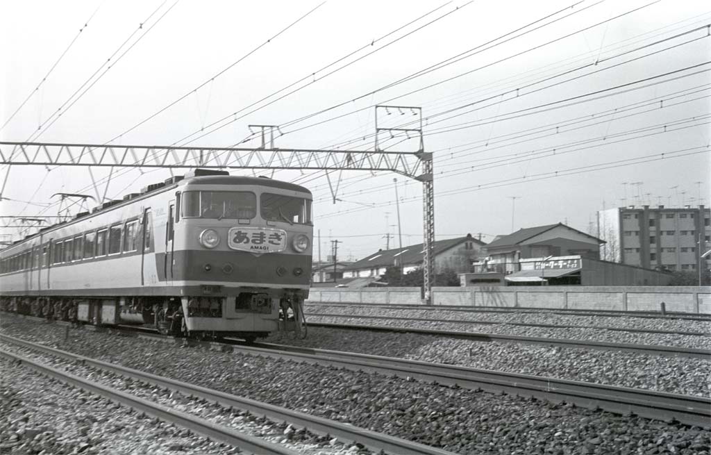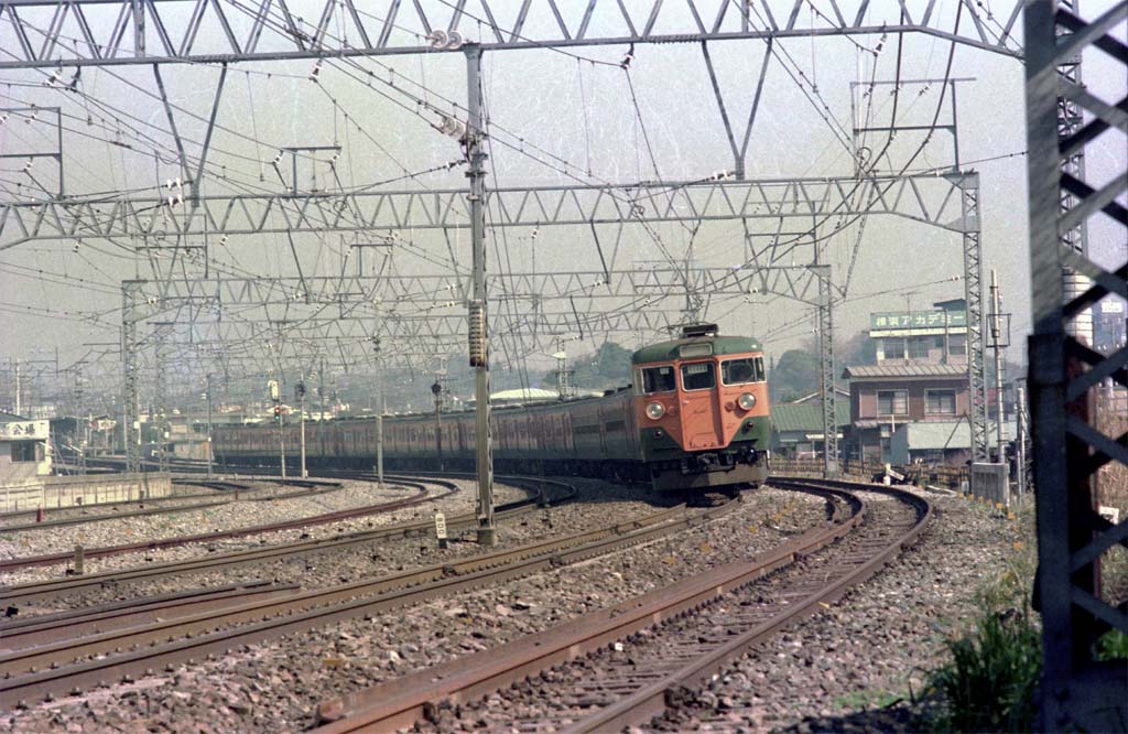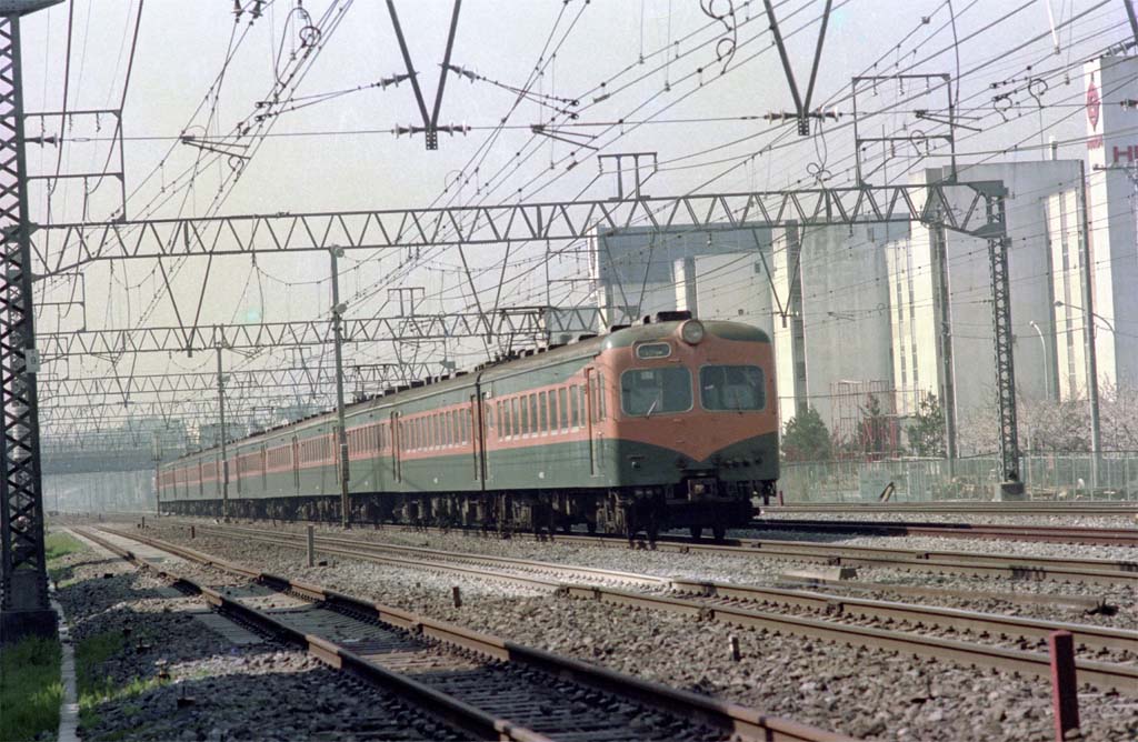 183-0 type Electric Car, Sobu Line at Ichikawa station It went down and it's nickname was Sazanami (means Ripples). 22.1.1984