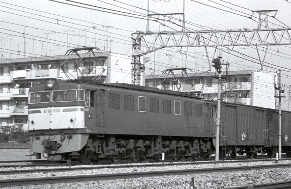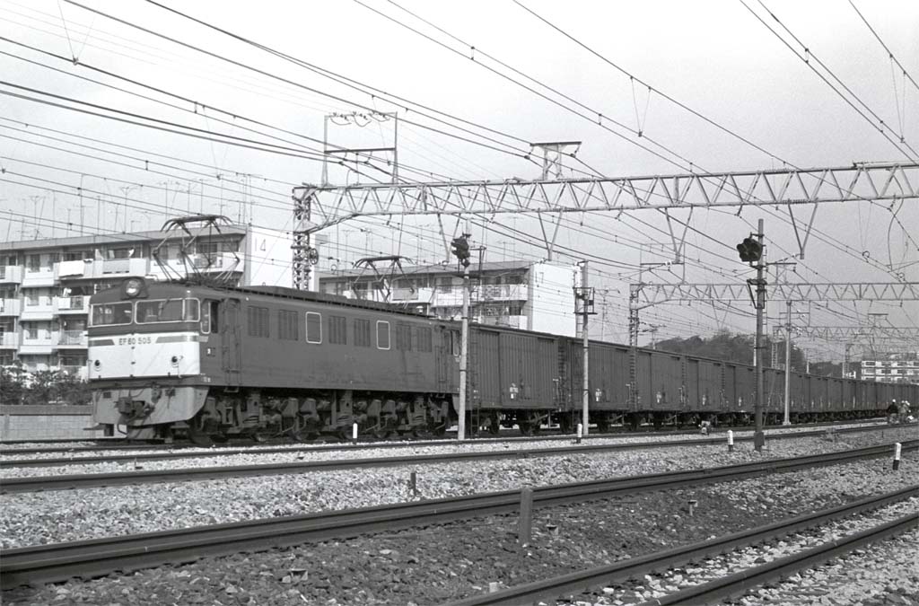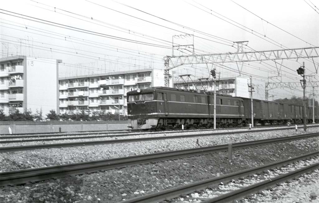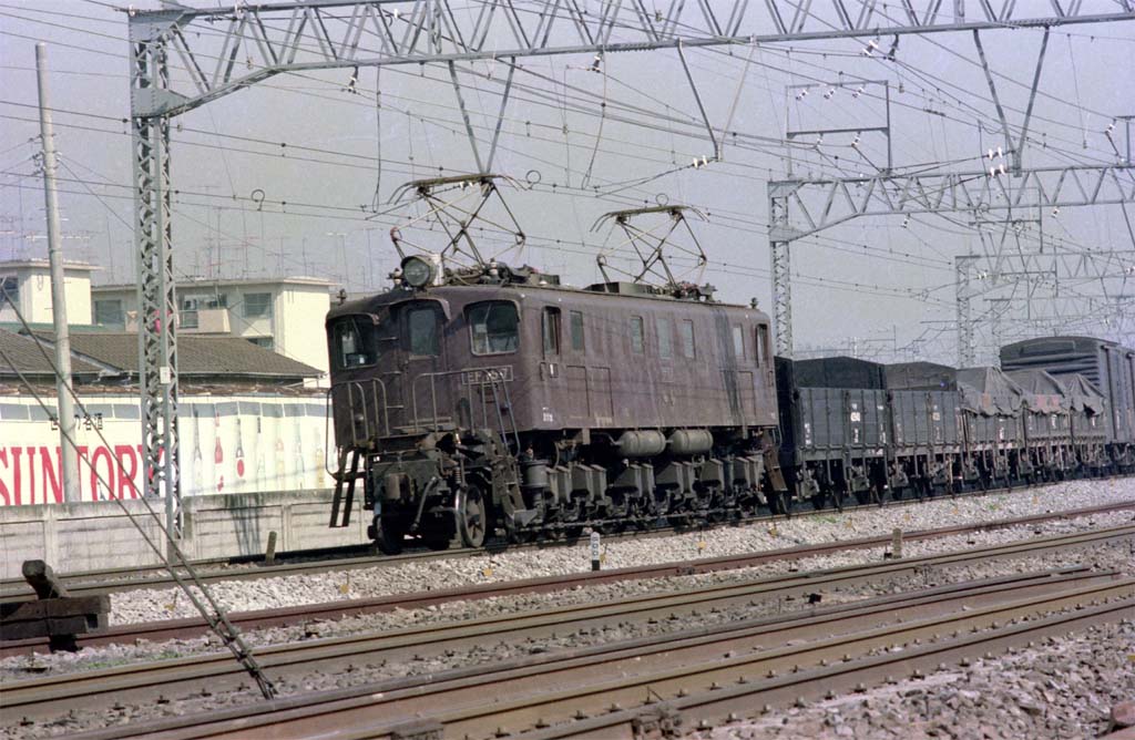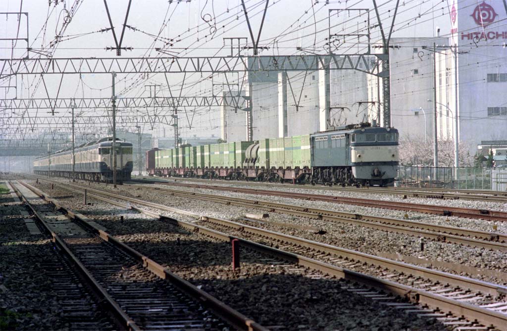 EF65-1002 Sobu Line at Ichikawa station It goes up and is Single. 15.1.1982