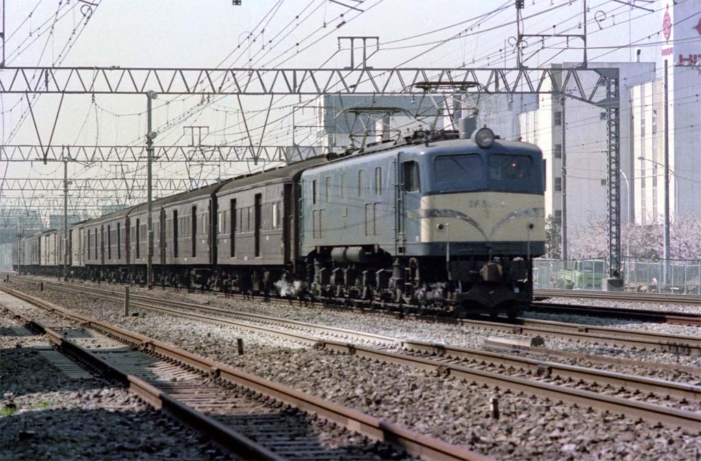 Class EF65-538 electric locomotive, Tamachi station, 05.04.1976n(I13)